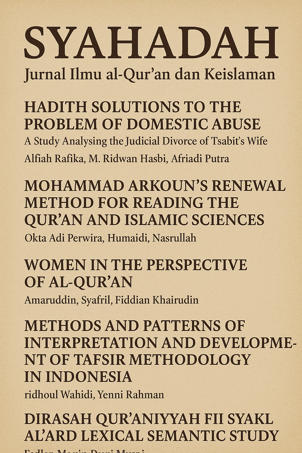 Syahadah: Jurnal Ilmu Al-Qur'an dan Keislaman